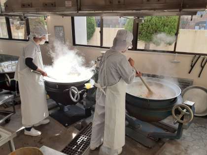 給食では、白みそで味つけした関西風のぞう煮でした。