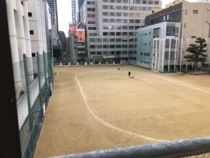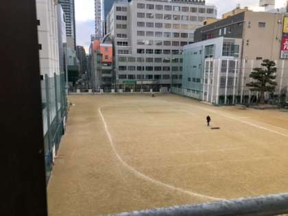 早朝の運動場、よくみてください。