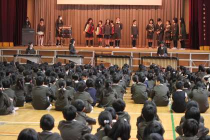 2月25日(水)、全校集会でクラブ発表を行いました。一年間の練習の成果を発揮し、素晴らしいハーモニーを奏でていました。