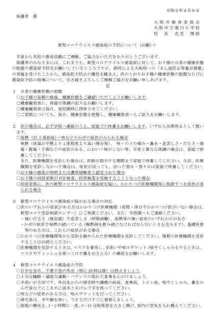 4月8日新型コロナウイルス感染拡大防止のお願い