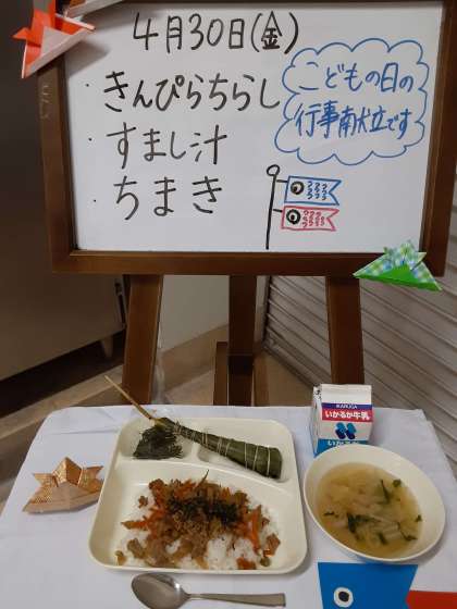 「きんぴらちらし、すまし汁、ちまき」でした。