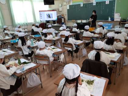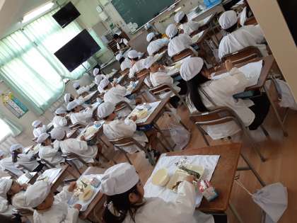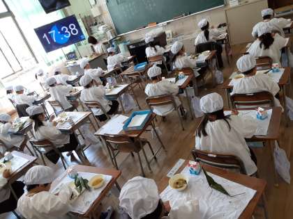 きんぴらちらしにきざみのりをかけるのも、一生懸命。