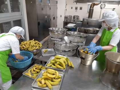 今日、堀川小学校には、何本バナナが届いたでしょう?