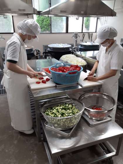 を調理委員さんが切ってくれているところです。
