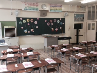 明日は入学式です。新1年生109名を迎えるために、全教職員で心をこめて準備をしました。教室もすっかりきれいになりました。