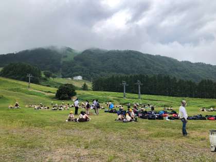 ハチ高原に到着し、昼食の時間です。こちらは曇り空です。