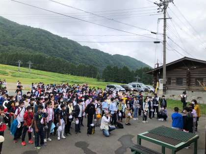着替えをし、登山の用意をして宿舎前で開舎式を行いました。