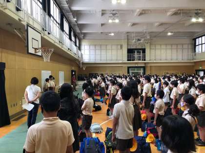 帰校式で、思い出を振り返り、成長した点をたくさんほめてもらって実感した子どもたちです。