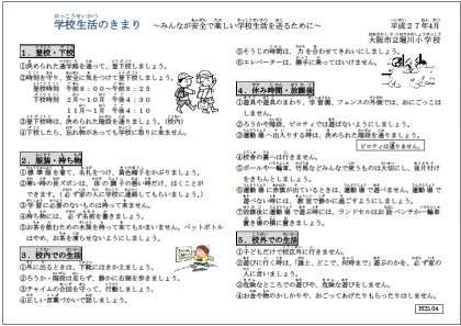 学校では、みんなが安心で安全な楽しい学校生活が送れるようにルールを設けています。