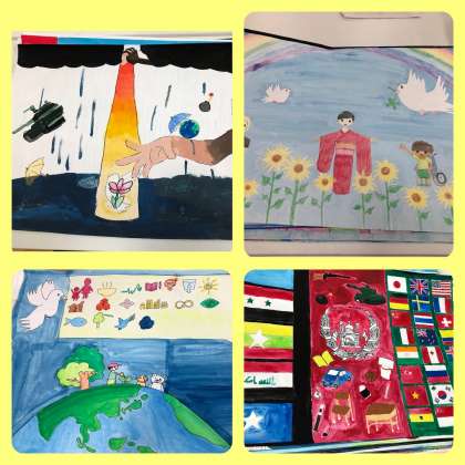 5・6年生が作品応募に取り組んでいた「平和ポスター」が今週出来上がり出品されました。