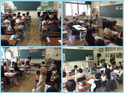 1年生にとっては、はじめての学習参観でした。国語「あいうえおのうた」の学習です。母音の「あ」「い」「う」「え」「お」の口形に気を付けてはっきりと読む練習をしました。見てくださっている方も多く、子どもたちにとってたいへん励みになったようです。