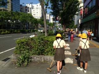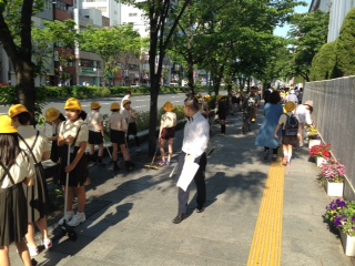毎月1日に行われている女性会の地域清掃活動に6年生が参加しました。子どもたちは朝8時過ぎには登校して集合、あいさつの後、学校前の歩道を地域の皆さんと一緒に清掃しました。歩道はすっかりきれいになりました。
