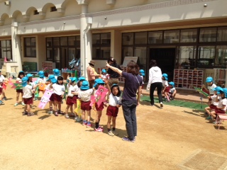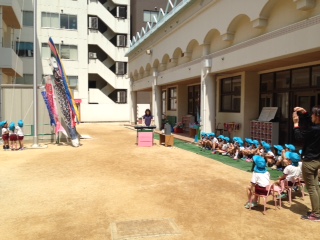 園長先生からこどもの日の由来を聞いたり、自分で作ったこいのぼりを持って、元気に走ったりしました。