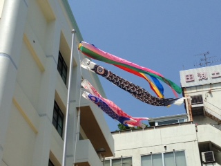 こいのぼりが気持ちよさそうに泳ぐ青空の下、こどもの日のつどいをしました。