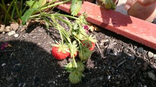 みんなで育てていた、いちごが赤くなりました!いちごの甘い薫りに、みんな大興奮。早速、いちご狩りをしました。一粒ずつ、大切におうちに持って帰りました。