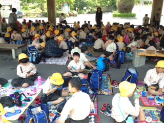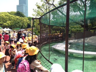 ちょっと暑いぐらいのとてもいい天気、1年生は天王寺動物園に遠足に行きました。道中や地下鉄車内でもマナーよく行動できました。