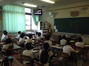 5月8日の金曜日に、全校テレビ朝会を行いました。本校では、全教室のテレビに放送室から映像を送る設備があります。この設備を活用してのテレビ放送朝会です。