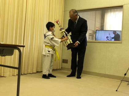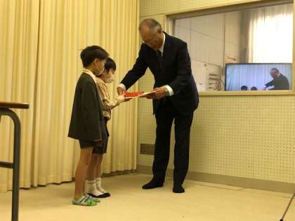 そして、絵画で表彰を受けた人、運動で活躍し表彰を受けた人が紹介され、学校のみんなから拍手が贈られました。