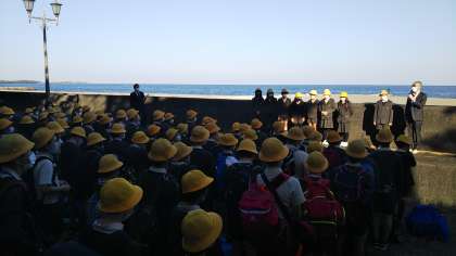 お世話になった宿舎の方々に感謝の気持ちを伝えました。いよいよ鳥羽水族館へ出発です。