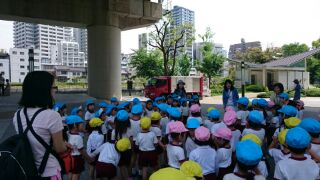 「菅南幼稚園の子と仲良くなったよ!」と大喜びでした。また一緒に遊びたいですね。