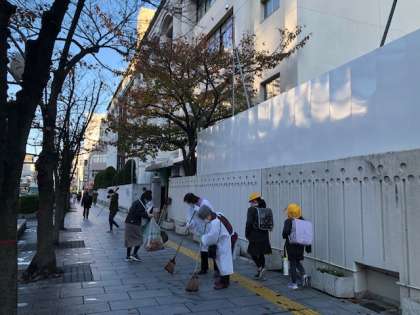 堀川女性会の皆さんとPTA役員さんが学校前を清掃してくださっています。