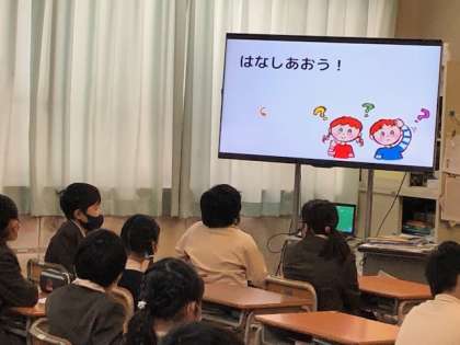 ペア学年のグループで、テレビのクイズ問題を考えます。