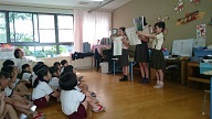一生懸命調べてくれた4年生。結果を幼稚園に知らせに来てくれました!葉っぱの違いで、アヤメ、ハナショウブ、カキツバタが分かるそうです。