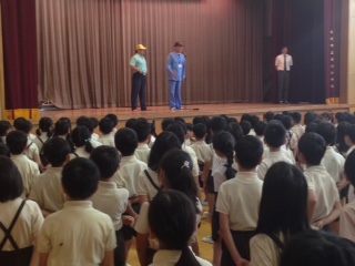 今日の児童朝会で、北区役所市民協働課地域安全防犯のあんまち隊の皆さんを紹介しました。あんまち隊の皆さんは、登下校の様子や公園などの見回り活動を行うなど、私たちの安全を守るためにいろいろな活動をしてくださっています。ありがとうございます。