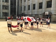 運動会の進行にあたっては、子どもたちがいろいろな役割を担います。入場行進、宣誓、市歌や運動会の歌、準備体操、整理体操、成績発表・・・・たくさんあります。