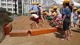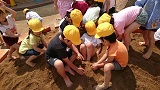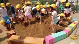 お山に登ったり、滑り台のようにすべったり・・・。砂場の砂とはまた違う感触ですね。