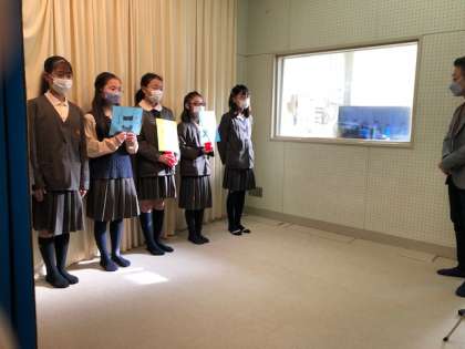 廊下は走らずに歩きましょう、と福祉委員会の児童が呼びかけます。