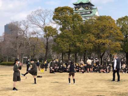 春の温かい日ざしのもと、大阪城西の丸庭園で、のびのび過ごしました。