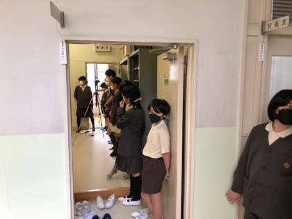 児童会のメンバーは、終わりの言葉を言い終わって、ほっとしました。