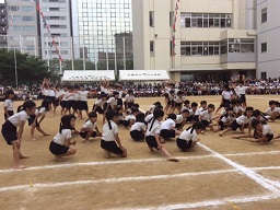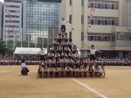 6年生の組体操のラスト、全員ピラミッドも見事成功です!