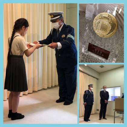 天満警察署から警察官の方がお越しになり、賞状や楯をいただきました。
