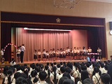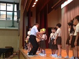 児童朝会で、各学級から選ばれた「あいさつ名人」を表彰しました。