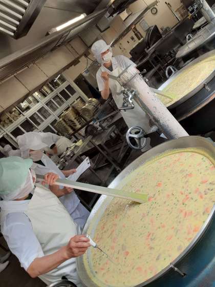 堀川小学校では、約950人分の給食を、8人の調理員さんが作ってくれています。