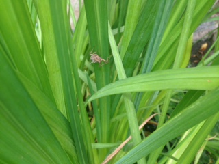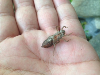 今朝も、菖蒲にヤゴの抜け殻がいくつかくっついていました。よく見ると背中の部分が割れていました。子どもたちには実際の羽化の様子を見てほしいと思いますが、なかなかそううまくはいかないようです。