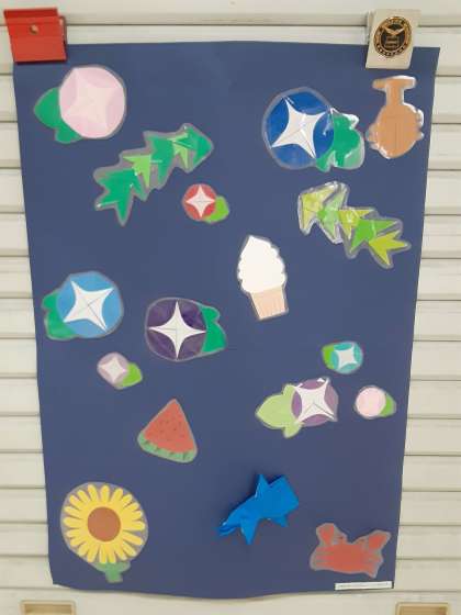 給食室前のかざりは、6年生のおともだちがつくってくれました。