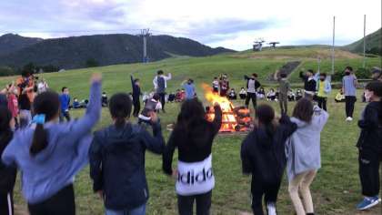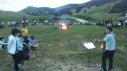 キャンプファイヤー係さんの進行で、各クラスや先生方からの出し物でおおいに盛り上がりました。最後は、皆でマイムマイムを躍りました。