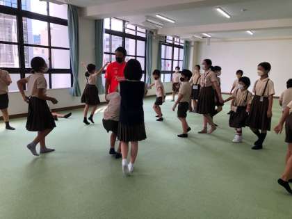 これは、新校舎ができて初めて、みんなが図書室へ入った日の様子です。