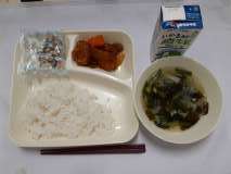 「酢豚、中華スープ、アーモンドフィッシュ」です。