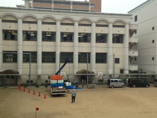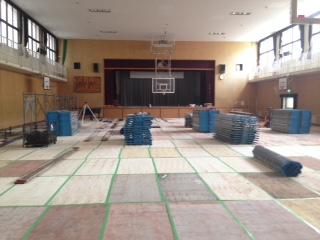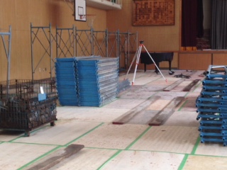 今日から講堂兼体育館の天井落下防止工事が始まりました。学校は地域の災害時避難場所になっていますが、大きな地震が起こった場合に講堂兼体育館の天井が落下するおそれがあるため、吊り下げ天井を取り除く工事をします。期間は7月7日から8月31日です。この間、講堂兼体育館は使用できません。ご理解とご協力をお願いいたします。