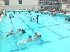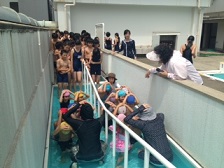 6年生が堀川幼稚園の子どもたちとプール交流をしました。6年生にとっては、膝までくらいしかありませんが、幼稚園の子どもたちはプールの大きさにびっくり!
