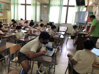 パソコンクラブも真剣です。操作を詳しく聞きながら取り組んでいます。