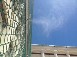 大型で強い台風11号の行方が気になるところです。現在の大阪の気温は34度と大変暑くなっています。この時期の熱中症がいちばん注意しないといけません。学校では、子どもたちの熱中症対策としてミストを2か所に設置しています。