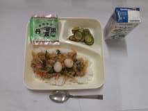 「中華丼、きゅうりのピリ辛あえ、ソフト黒豆」です。