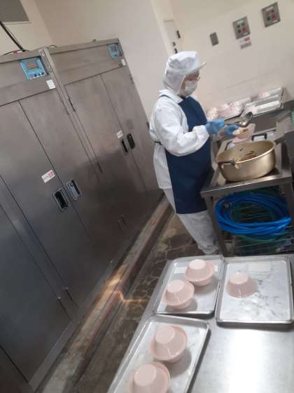 うずら卵を入れる直前に鍋にとり、除去食を準備しています。