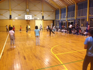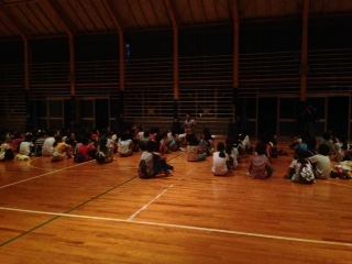 施設の周りをナイトハイクした後は、班対抗ドッジボールをしました。楽しい一日が無事終わりました。