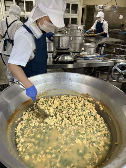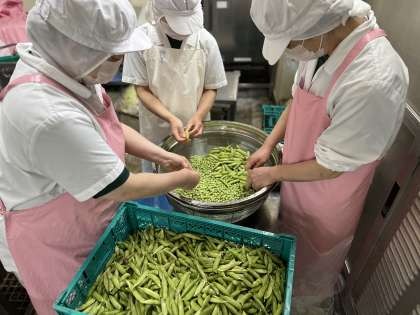 一粒ずつ、調理員さんたちが、さやから出してくれています。